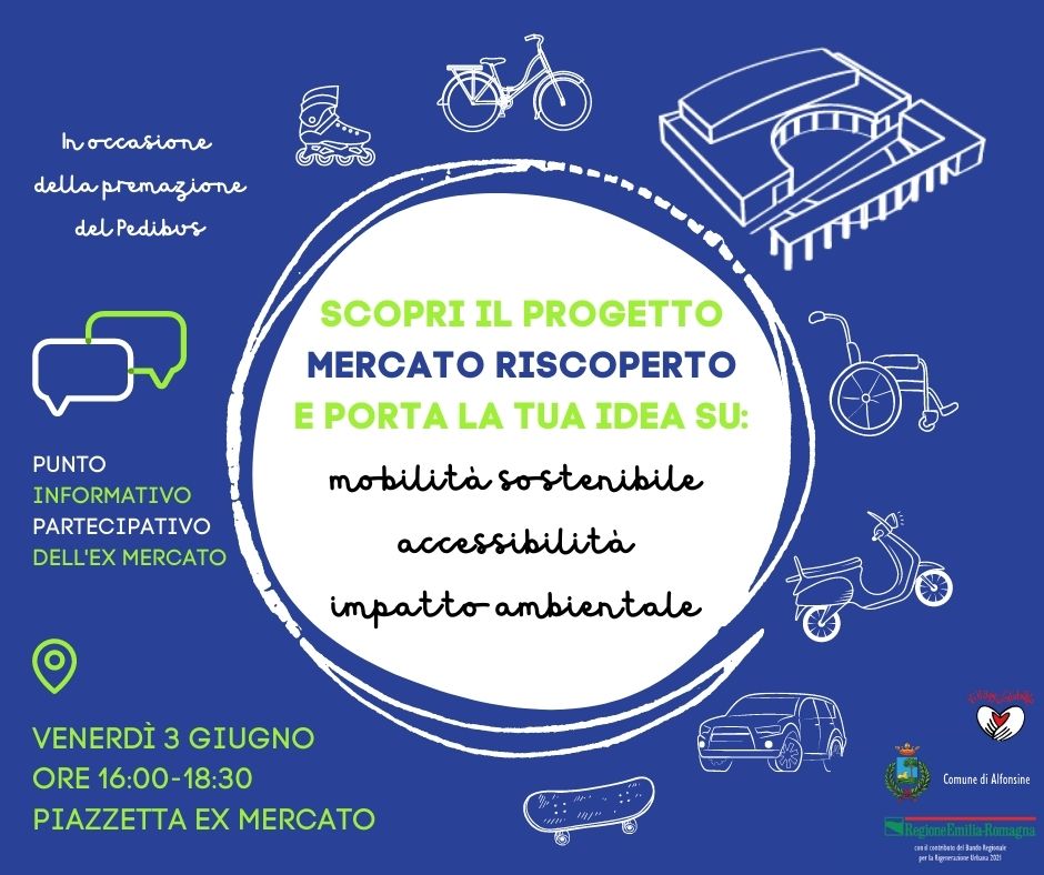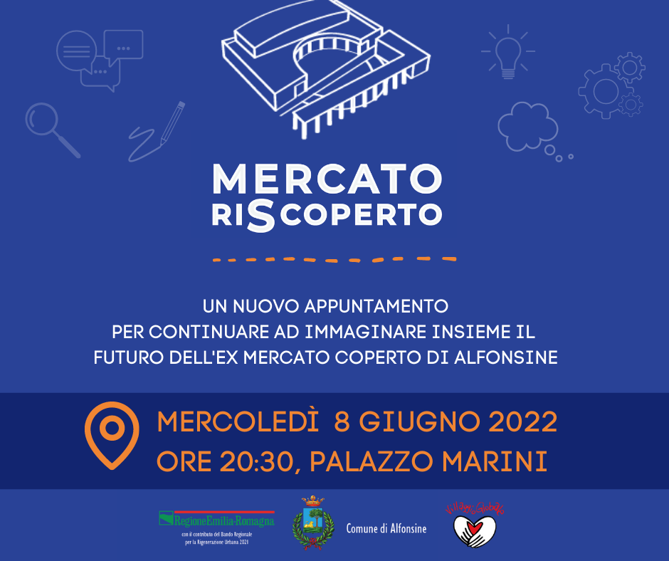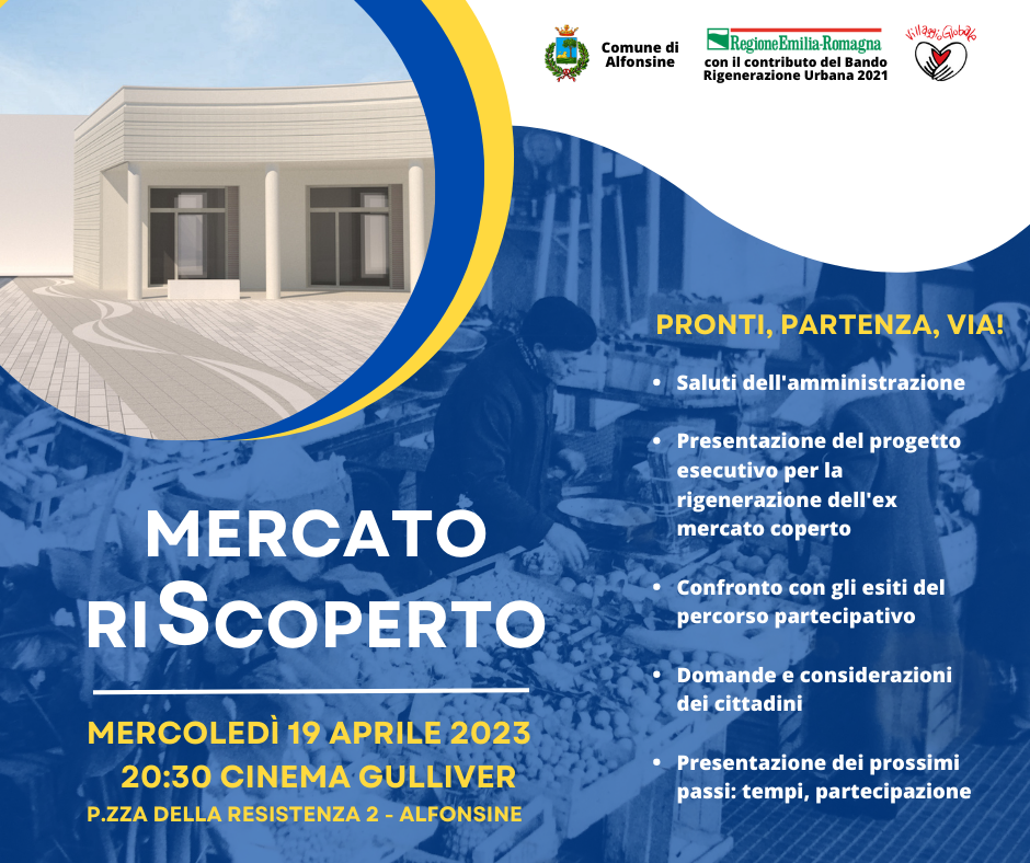 Tra dicembre 2018 e gennaio 2019 è stato presentato alla popolazione il progetto di fattibilità tecnico-economica per la ricostruzione dell’ex Mercato coperto di Alfonsine, con lo scopo di attivare un processo di partecipazione in cui tutti i cittadini potessero dare il proprio contributo di idee e modalità di utilizzo.