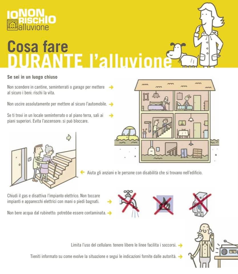 Si raccomanda inoltre la massima attenzione in particolare a chi abita nei pressi dei fiumi (in alcuni comuni della provincia ci sono state delle evacuazioni ed è opportuno per chi abita in prossimità dei fiumi tenersi pronti a qualunque evenienza) e si ricordano ancora una volta i più importanti comportamenti da adottare, all’insegna della massima prudenza: non recarsi negli scantinati, prestare particolare attenzione allo stato dei corsi d’acqua; evitare spostamenti non necessari.