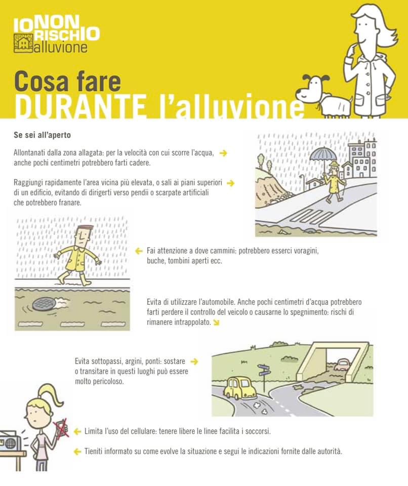 Si raccomanda di non recarsi sugli argini e di non avvicinarsi alle zone allagate per non intralciare i mezzi di soccorso e non mettersi a propria volta in pericolo.