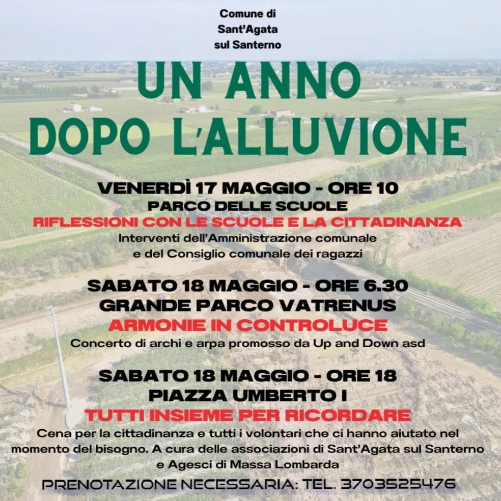 I comuni dell'Unione ricordano il primo anniversario dall'alluvione di maggio 2023 con numerosi appuntamenti rivolti a tutti.