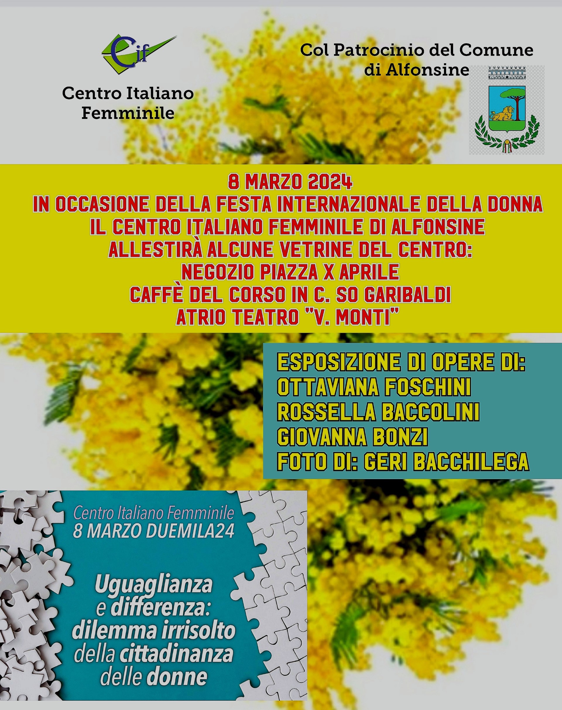 In occasione della Festa Internazionale della Donna, il Centro Italiano Femminile di Alfonsine allestirà alcune vetrine del centro: