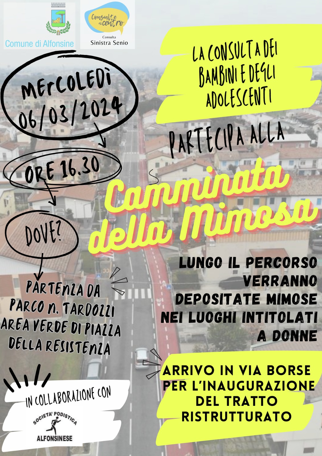 Percorso tematico con deposizione di mimose nei luoghi intitolati alle donne insieme alle Consulte dei Ragazzi e degli Adolescenti.